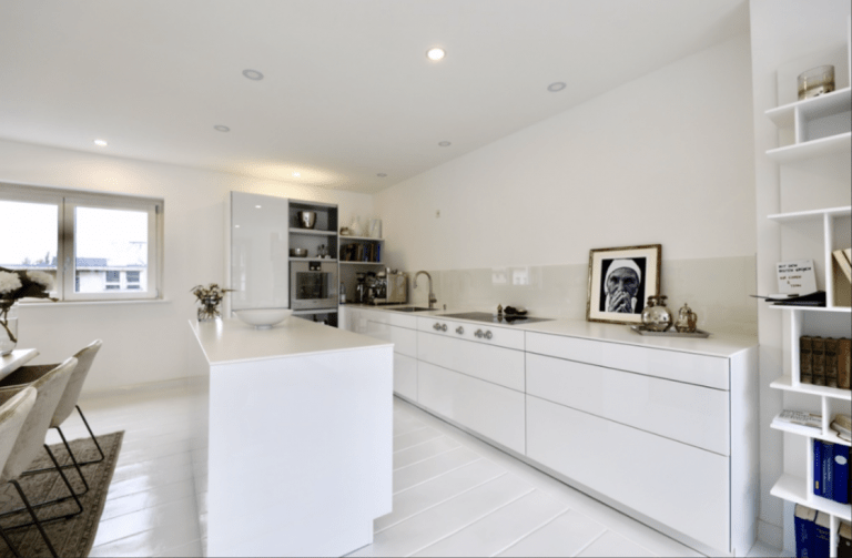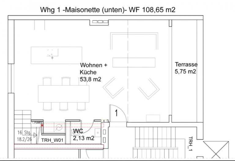 Die sehr hochwertige, edle Einbauküche ist im Wohn-/Essbereich integriert, so dass ein loftartiges Raumgefühl entsteht. Eine großzügige Terrasse mit bodentiefen Holzschiebefenstern ist von diesem Bereich zugänglich.