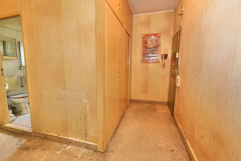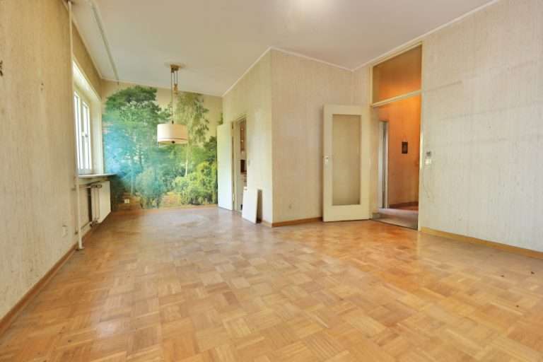 Das Wohnzimmer ist mit Stäbchenparkett ausgestattet. In den übrigen Wohnräumen war Auslegware verlegt, die bereits entfernt worden ist. Die Wände sind tapeziert und müssen aufbereitet werden.