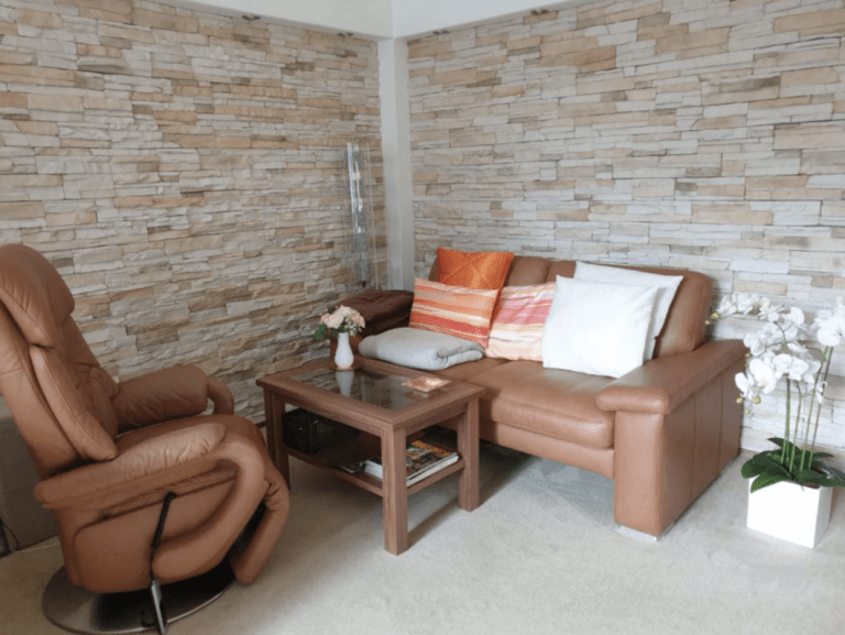 - Steinwand über Eck mit integrierter Beleuchtung (Halogen)