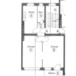 Ein kleiner, zur Straßenseite südlich ausgerichteter Balkon ist ebenfalls vorhanden und vom Wohnzimmer begehbar.
