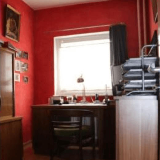Der Grundriss ist praktisch geschnitten. Über den Flur erreicht man zur linken Seite über einen kleinen Abstellraum, der sich z.B. als Garderobe eignet, das Arbeitszimmer. Danebenliegend befindet sich das gemütliche Wohnzimmer, von dem aus auch der südwestlich ausgerichtete Balkon zu begehen ist.