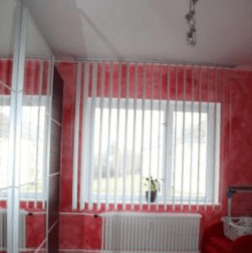 Im Schlafzimmer steht eine große Stellwand für einen breiten Kleiderschrank zur Verfügung.