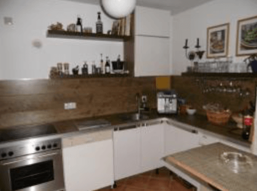 Die Wohnung ist im ersten Geschoss über eine Treppe begehbar. Im Eingangsbereich befinden sich ein Flur und die Küche mit Essbereich sowie eine schöne Frühstücksterrasse mit Morgensonne. Das Badezimmer und das Wohnzimmer schließen sich an, hier ist ein weiterer Balkon vorhanden, der zu gemütlichen Abenden mit West-Ausrichtung einlädt.
