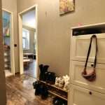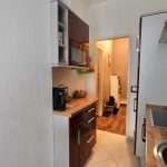 Im unteren Bereich der Wohnung befinden sich der Flur, die Küche, ausgestattet mit einer modernen Einbauküche, und das Wohnzimmer..
