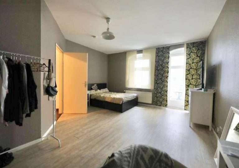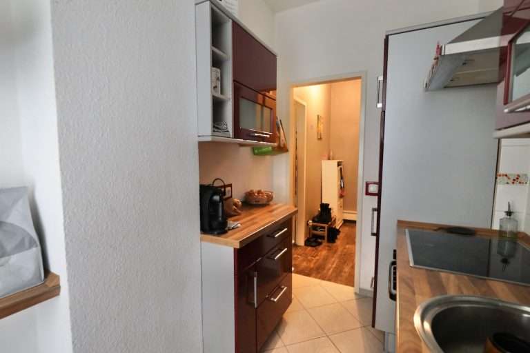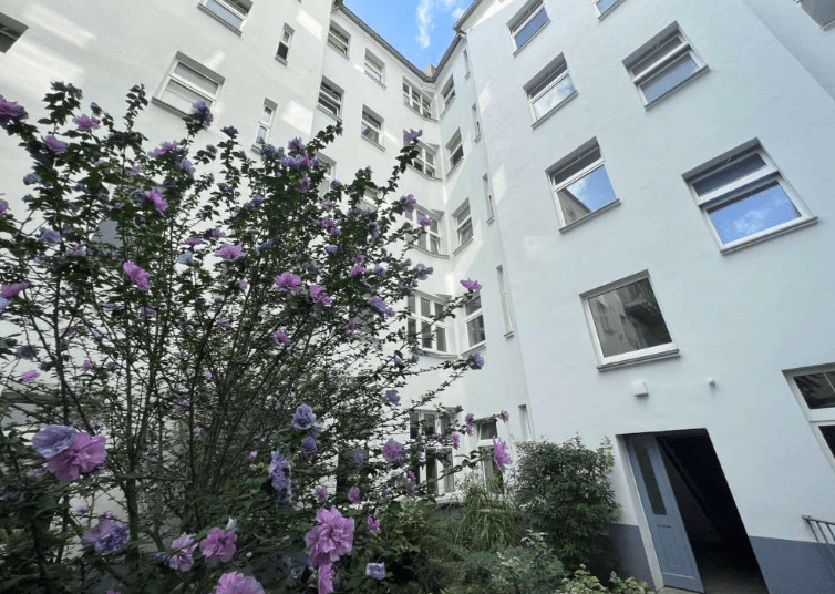 Das fünf-geschossige Wohn- und Geschäftshaus wurde 1910 erbaut und ist in ein Vorderhaus, einen Seitenflügel und ein Hinterhaus aufgeteilt. Die Maisonette-Wohnung befindet sich ruhig gelegen im Hinterhaus, erstreckt sich über das Erdgeschoss und das erste Obergeschoss und verfügt insgesamt über eine Wohnfläche von ca. 75 m².
