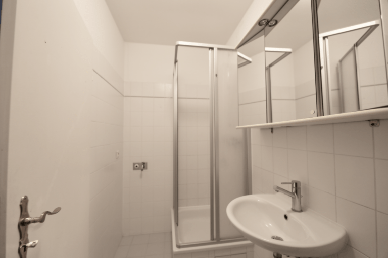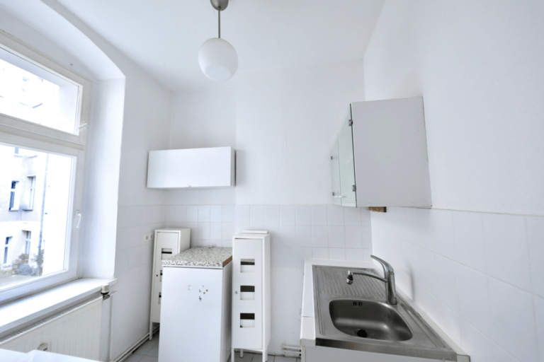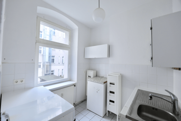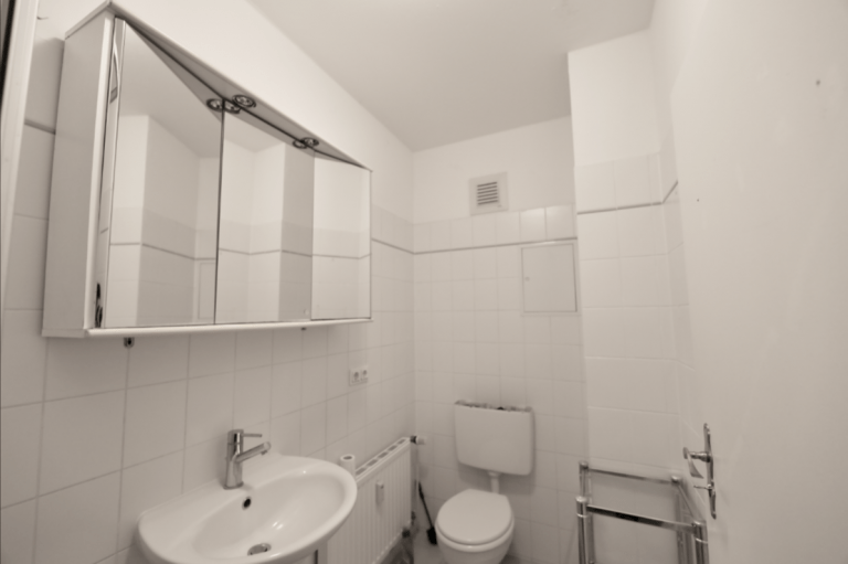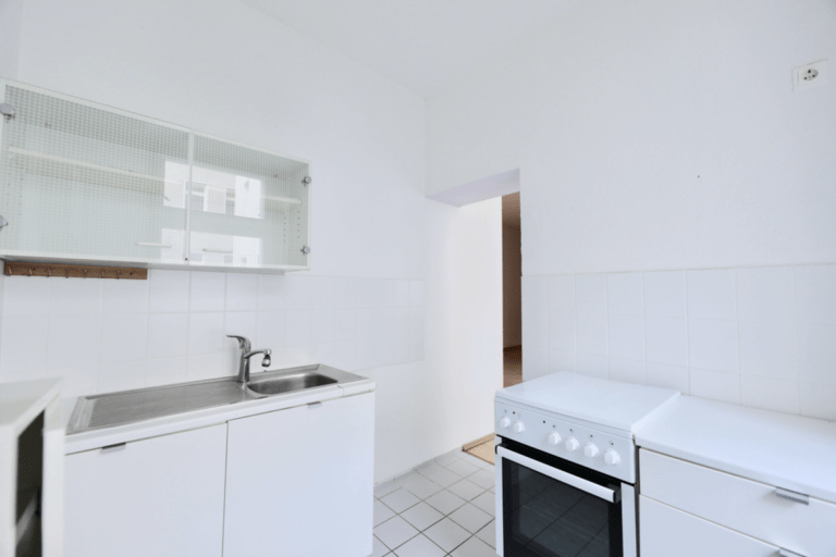 Die Wohnung ist ruhig im ersten Obergeschoss des Hinterhauses gelegen und verfügt über ca. 42,55 m² Wohnfläche, die auf einen Flur, ein gefliestes Badezimmer, ausgestattet mit einer Dusche und Waschmaschinenanschluss, ein geräumiges Wohn-/Schlafzimmer mit genügend Platz für eine Sitzecke und eine hell geflieste Küche aufgeteilt sind.