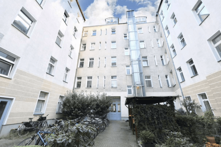 Das 1910 erbaute Gebäude besteht aus einem Vorderhaus, zwei Seitenflügeln, sowie einem Hinterhaus. Alle 49 Einheiten des Mehrfamilienhauses verteilen sich auf insgesamt vier Geschosse zuzüglich des Dachgeschosses.