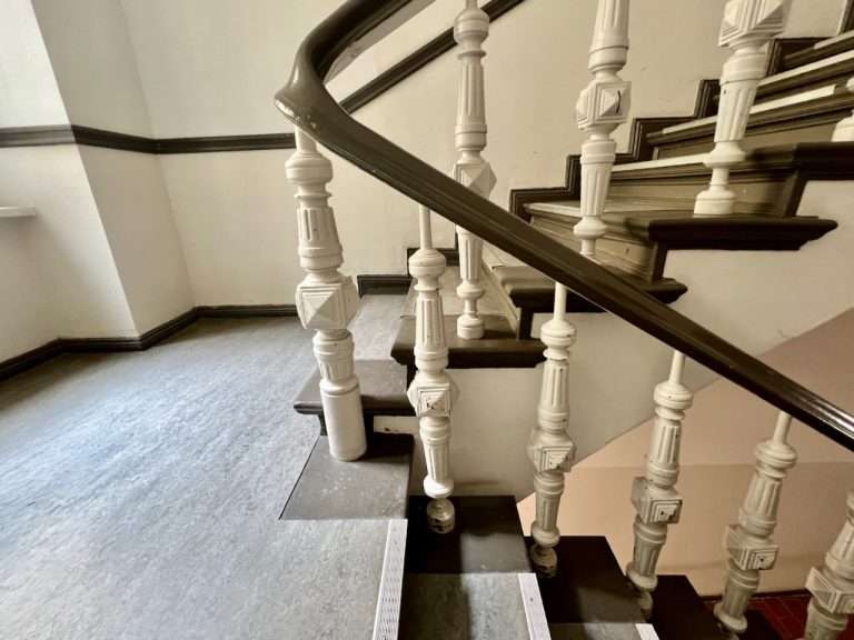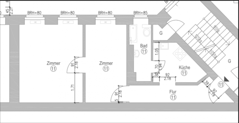 Die Wohnung befindet sich im ersten Obergeschoss des Seitenflügels und ist über das Treppenhaus zu erreichen.