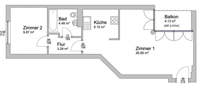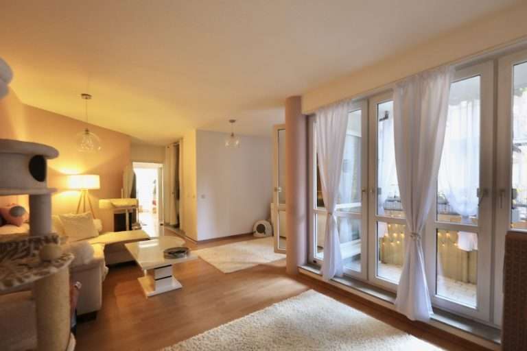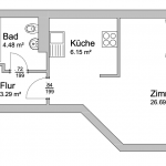 Die Wohnfläche von ca. 52,55 m² ist modern aufgeteilt. Beim Betreten der Wohnung erschließt sich sofort das geräumige Wohnzimmer mit bodentiefen Fenstern und Zugang zur Loggia, von der ein schöner Blick in den gepflegten und begrünten Gemeinschaftsgarten gegeben ist. Der Küchenbereich schließt sich dem Wohnzimmer an und beinhaltet eine Einbauküche. Über einen kleinen Flur befinden sich weiterhin das Badezimmer, ausgestattet mit einer Badewanne, sowie das Schlafzimmer.