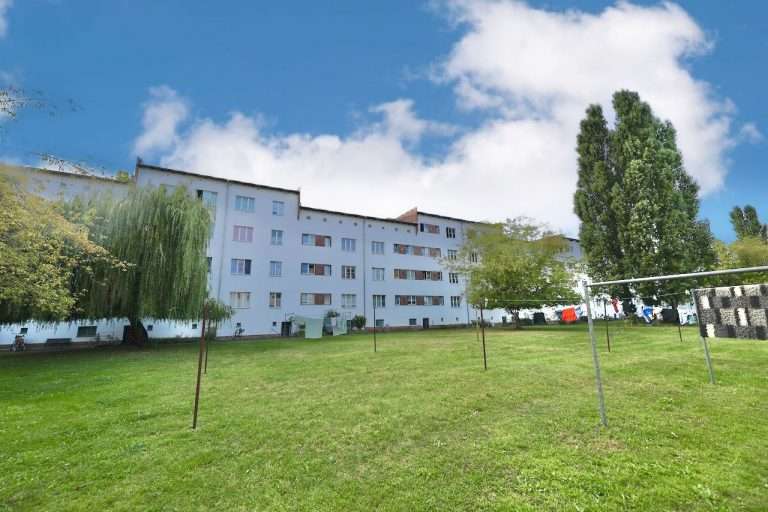 Das dreigeschossige Wohngebäude wurde 1927 erbaut und gehört somit in die beliebte Bauhaus-Zeit. Die Wohnung befindet sich im dritten Obergeschoss und ist über das Treppenhaus zu erreichen.