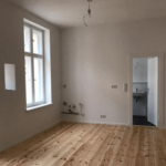 Die Wohnung WE12 befndet sich im Quergebäude im 4. OG, verfügt über ein ausbaufähiges Flachdach, und soll verkauf werden zusammen mit dem Dachgeschossrohling TE33 im 5. OG des Seitenflügels des 1901 erbauten Altbaus.