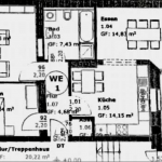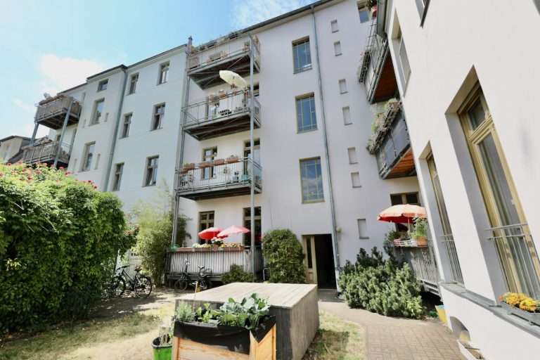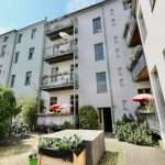 Eine Wohnfläche von ca. 77m² verteilt sich auf einen Flur; zwei Schlafzimmer; ein innenliegendes Badezimmer mit Badewanne; eine große Küche mit östlicher Ausrichtung, ausgestattet mit einer Einbauküche und genügend Platz für eine Sitzecke, sowie ein Wohnzimmer. Von der Küche aus ist der Balkon zu begehen, welcher im Zuge der Sanierungsmaßnahmen angesetzt wurde und einen Blick in den begrünten Innenhof bietet.