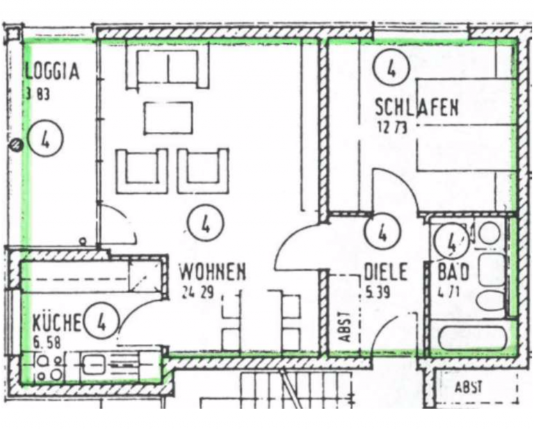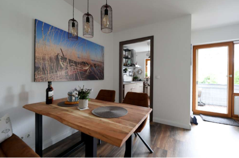 In den Wohnräumen ist ein stilvoller Laminatboden verlegt. Die Küche und das Badezimmer sind hell gefliest. Die Deckenhöhe beträgt ca. 2,50m.
