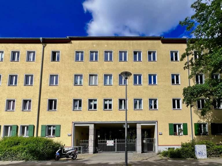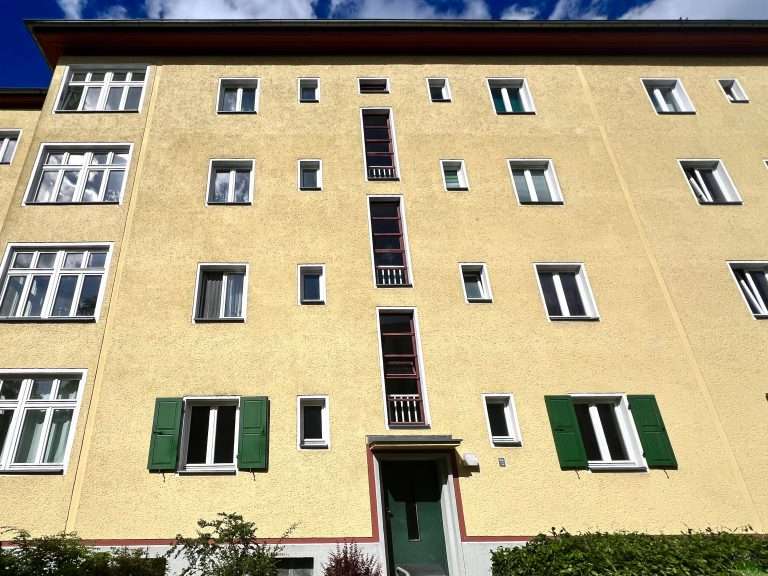 Das gepflegte Wohn-Ensemble wurde um 1938 errichtet und ist Teil einer weitläufigen, begrünten Wohnanlage.