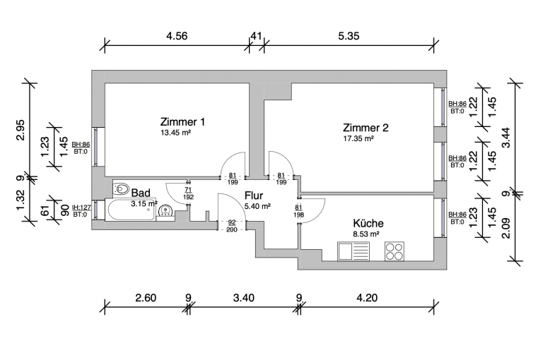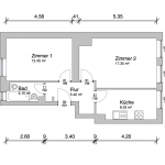 Die Wohnung befindet sich im bequemen Hochparterre. Auf ca. 47,88 m² verteilen sich eine Küche, zwei Zimmer sowie ein tagesbelichtetes Wannenbad.