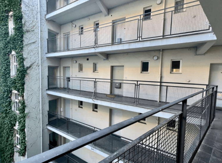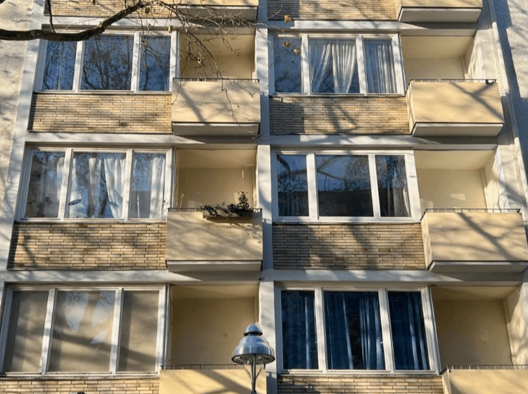 Das 6-geschossige Wohn- und Geschäftshaus, bestehend aus einem Altbau aus dem Jahre 1920 und einem Neubau aus dem Jahre 1950, verfügt über insgesamt 43 Wohnungen und zwei Gewerbeeinheiten.