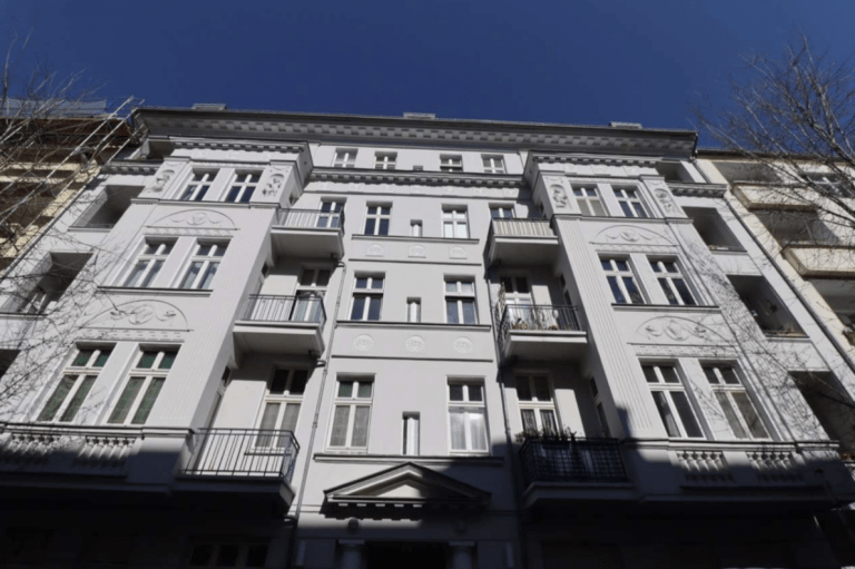 Die Wohnung befindet sich im Erdgeschoss eines 1908 erbauten und 5 ½-geschossigen Mehrfamilienhauses mit Jugendstilfassade und wunderschönen, historischen Elementen. Das Haus besteht aus einem Vorderhaus und zwei Seitenflügeln und wurde 1999 umfangreich saniert.
