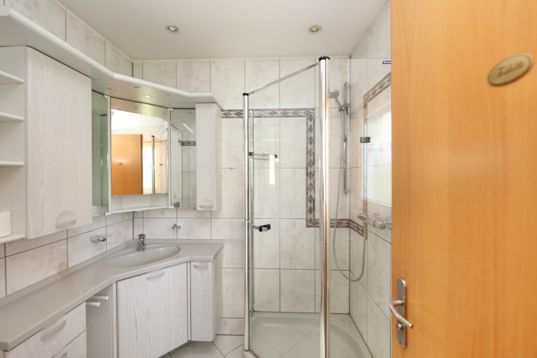 Im Obergeschoss befinden sich drei Schlafzimmer sowie ein Badezimmer mit Eckbadewanne und separater Dusche. Ein Spitzboden bietet zusätzlichen Stauraum.