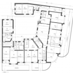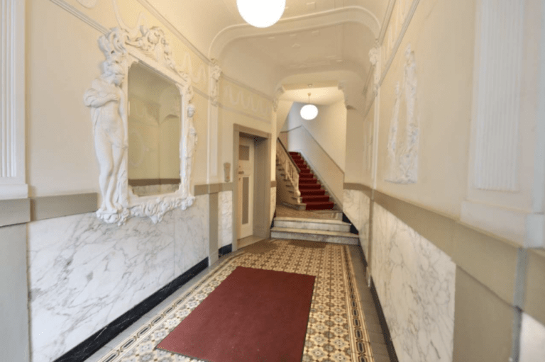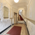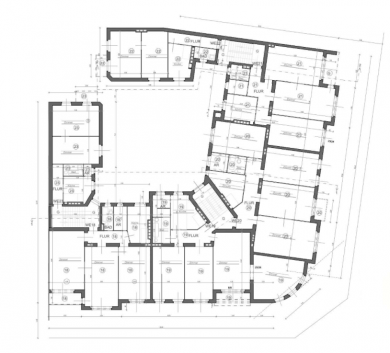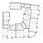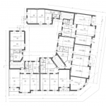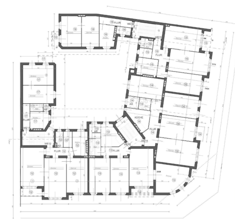Aufgeteilt ist das Gebäude in ein Vorderhaus und zwei Seitenflügel, bestehend aus Erdgeschoss, drei Obergeschossen sowie einem Dachgeschoss mit zusätzlichen 350 m², die ausgebaut werden können.