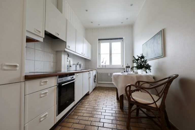 Die Wohnräume sind mit Auslegware ausgestattet. Die Küche ist gefliest, und die Deckenhöhe beträgt, dem Baujahr entsprechend, ca. 2,90 m.