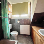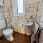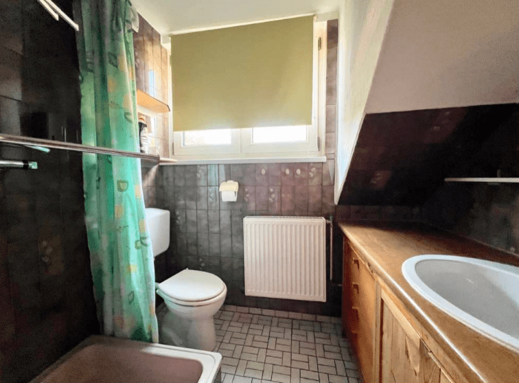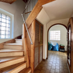 Eine schöne Holztreppe ermöglicht den Zugang zum Obergeschoss, wo sich zwei Schlafzimmer und ein Badezimmer, ausgestattet mit einer Dusche, befinden. Für warmes Wasser sorgt ein Durchlauferhitzer.