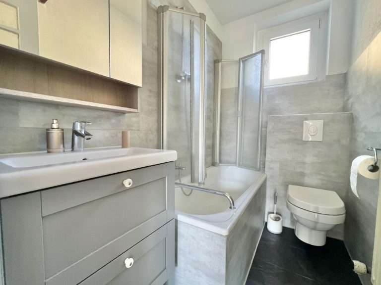 Die Wohnung wurde 2020 komplett renoviert. Im Zuge der Renovierung wurden die Wohnräume mit pflegeleichtem Laminatboden und Trittschalldämmung versehen. Die Wände des Badezimmers wurden mit Vinylplatten verkleidet, und ein neues Vorbau-WC sowie eine Duschwand wurden installiert und neue Badmöbel eingebaut. Zudem wurden die Stromleitungen mit Erdung und FI-Schutzschaltern ausgestattet.