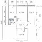 Eine Wohnfläche von ca. 65 m² verteilt sich auf einen Flur mit Einbauschränken; zwei Schlafzimmer; ein Badezimmer, ausgestattet mit einer Badewanne; ein Wohnzimmer; eine Küche, ausgestattet mit einer Einbauküche, und mit Zugang zur westlich ausgerichteten Loggia, die einen Blick in den begrünten Innenhof bietet. Eine Abstellkammer sorgt für zusätzlichen Stauraum.