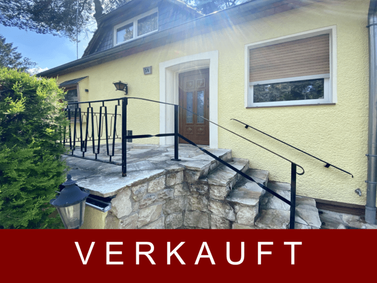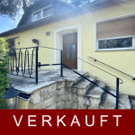 Das freistehende Einfamilienhaus mit vollständig umschlossenen Grundstück wurde im Jahr 1956 errichtet und sticht durch seine freundliche, hellgelbe Fassade hervor.