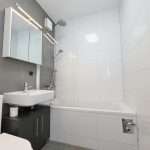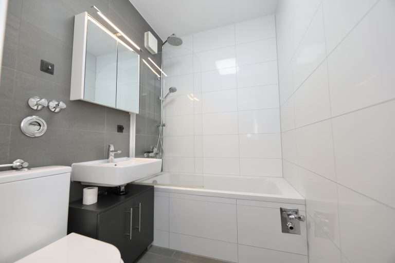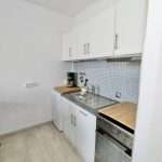 Diese verteilt sich auf einen Eingangsbereich mit ausreichend Platz für eine Garderobe; ein Badezimmer, ausgestattet mit einer Badewanne und eine offen gehaltene Küche, die in den Wohn-/Schlafzimmerbereich integriert ist.
