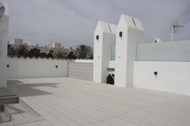 Weiterhin steht eine Dachterrasse zur Verfügung mit seitlichem Meerblick. Anschlüsse für das Kochen im Freien und eine Außendusche sind ebenfalls vorhanden.