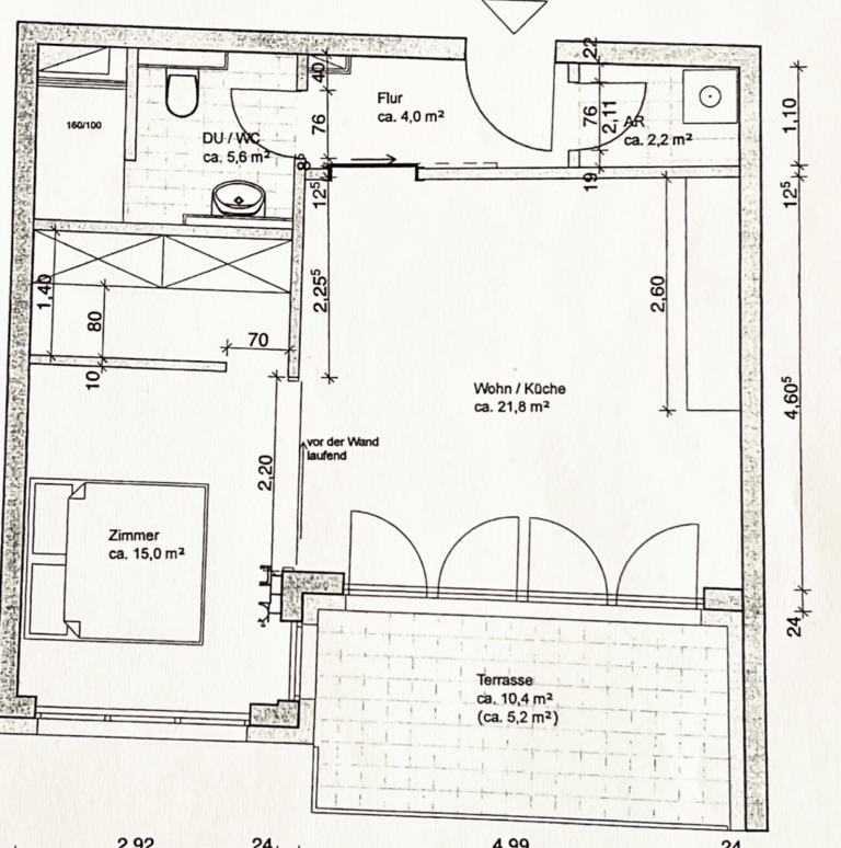 Eine Raumhöhe von ca. 2,60m, die moderne Farbgestaltung der Wände und der hochwertige Parkettboden vermitteln ein angenehmes Raumgefühl und ein stilvolles Wohnambiente.