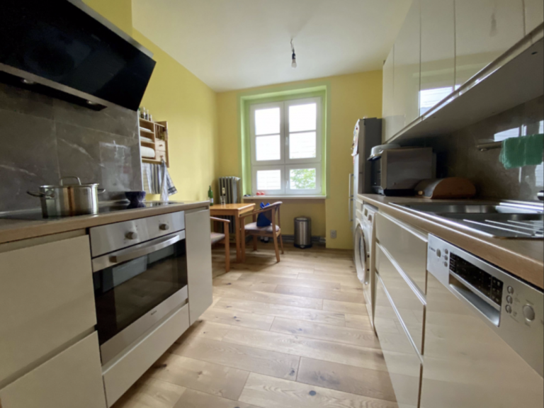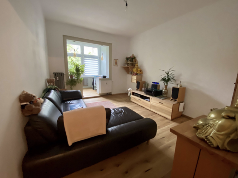 Die gesamte Wohnung wurde 2019 komplett saniert. Im Zuge der Sanierung wurden die Elektrik, die sanitären Anlagen und die Rohre erneuert. Im Flur, im Wohnzimmer und im Schlafzimmer ist einheitlich ein sehr schöner Eichenparkettboden verlegt. Die Küche und das Badezimmer sind hell gefliest und modern gestaltet.