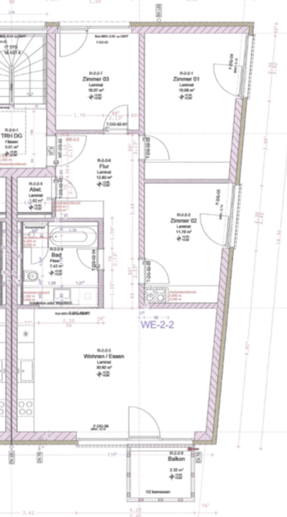 Alle Wohnräume werden mit einem hochwertigen Laminatboden ausgestattet. Im Badezimmer ist ein moderner Fliesenboden geplant. Die Wohnung wird über eine Fußbodenheizung beheizt. Eine Raumhöhe von etwa 2,56 m und bodentiefe Fenster verleihen ein offenes, helles und großzügiges Wohngefühl.