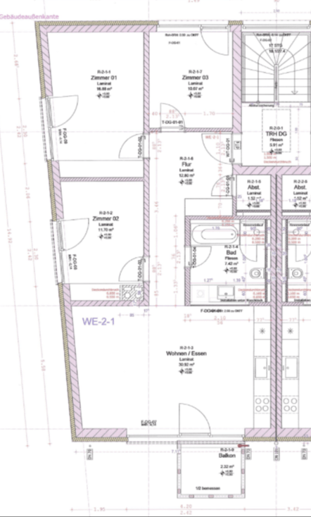 Die Wohnung befindet sich im Dachgeschoss des Wohnhauses und verfügt über eine Wohnfläche von ca. 94 m². Diese verteilt sich auf 4 Zimmer nebst einem Flur, einem Badezimmer und einem Abstellraum. Der Wohn- und Essbereich ist offen geplant und bietet Platz für eine Küchenzeile. Von hier aus ist der einladende Balkon mit einer Fläche von ca. 5 m², zu begehen. Der Balkon verfügt über eine sonnige, süd-westliche Ausrichtung. Der nördliche Grundstücksanteil gehört der Gemeinschaft als Spiel- und Kommunikationsfläche.