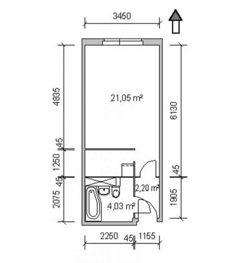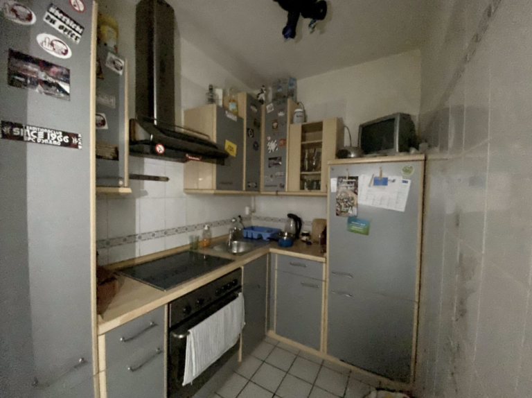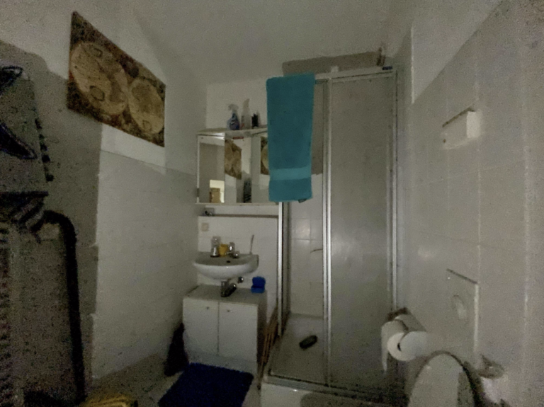 Vom Eingangsbereich aus befindet sich auf der linken Seite das Duschbad., danebenliegend die Küche und zum ruhigen Hofbereich ausgerichtet das geräumige Wohn-/Schlafzimmer.