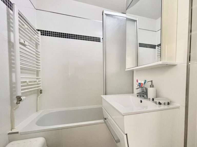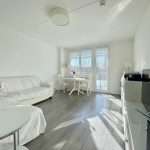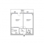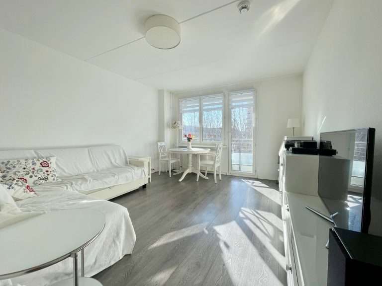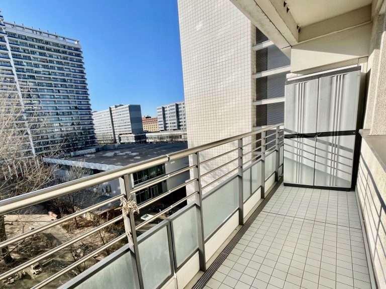 Die 2013 renovierte Wohnung befindet sich im sechsten Obergeschoss. Auf einer Wohnfläche von ca. 46,37 m² verteilen sich ein Flur, ein modern gefliestes Wannenbad, einen halb offener Küchenbereich inklusive einer Einbauküche aus dem Jahr 2013, sowie ein Schlafzimmer und ein Wohnzimmer. Von Letzterem ist die großzügige West-Loggia zu begehen.