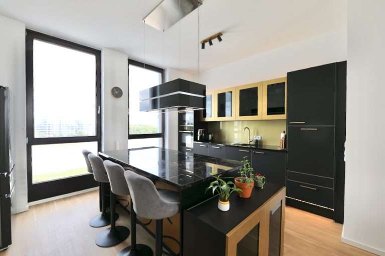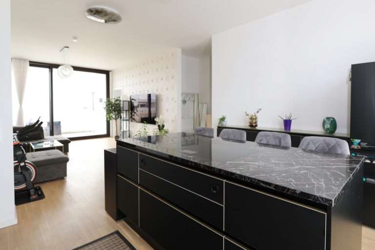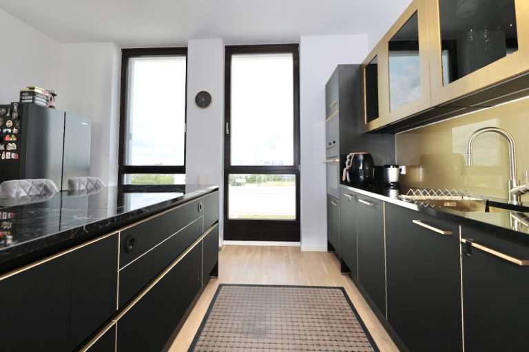 Die Einbauküche lässt keine Wünsche offen und ist hochwertig ausgestattet. Eine zentrale Kücheninsel mit Tresenbereich, leistungsstarke Küchengeräte der Marken Küppersbusch und Miele sowie eine effiziente Dunstabzugshaube bieten ideale Voraussetzungen für anspruchsvolles Kochen. Die elegante Arbeitsplatte aus Naturstein unterstreicht das hochwertige Ambiente der Küche. Die Küche kann nach Absprache für 25.000 EUR übernommen werden.