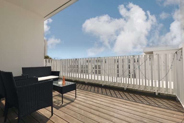 Eine Wohnfläche von ca. 92 m² verteilt sich auf einen Eingangsbereich; ein modernes Duschbad mit Handtuchwärmer, Oberlicht und einem angrenzenden Hauswirtschaftsraum; ein Schlafzimmer mit einem integrierten Ankleidebereich; ein weiteres Zimmer, das sich als Arbeitszimmer oder Kinderzimmer eignet, sowie einen großzügigen Wohn-/Essbereich mit offener Küche und Zugang zur ca. 11,32 m² großen, überdachten Terrasse, die zurückgesetzt und sichtgeschützt ist.