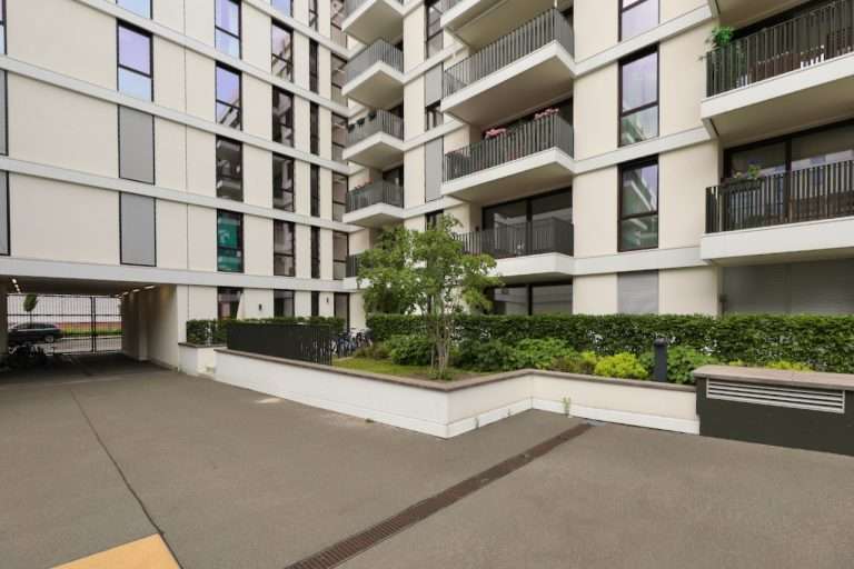 Das Wohnensemble wurde 2021 erbaut, beinhaltet vier Seiten mit jeweils vier Hauseingängen und verfügt über stilvoll angelegte, begrünte Außenanlagen im großzügigen Hofbereich. Die Wohnung ist im sechsten Obergeschoss gelegen und bequem mit einem Aufzug zu erreichen, der für die größeren Wohnung in diesem Eckbereich des Gebäudes zur Verfügung steht. Es gibt nur jeweils zwei Wohnungseingänge auf den Etagen, was den exklusiven Charakter unterstreicht. Die kleineren Wohneinheiten sind über einen separaten Aufzug zu erreichen.