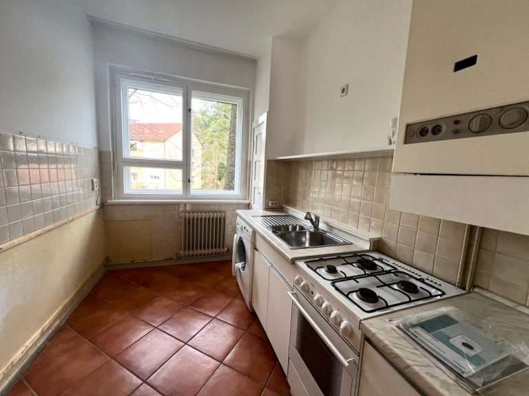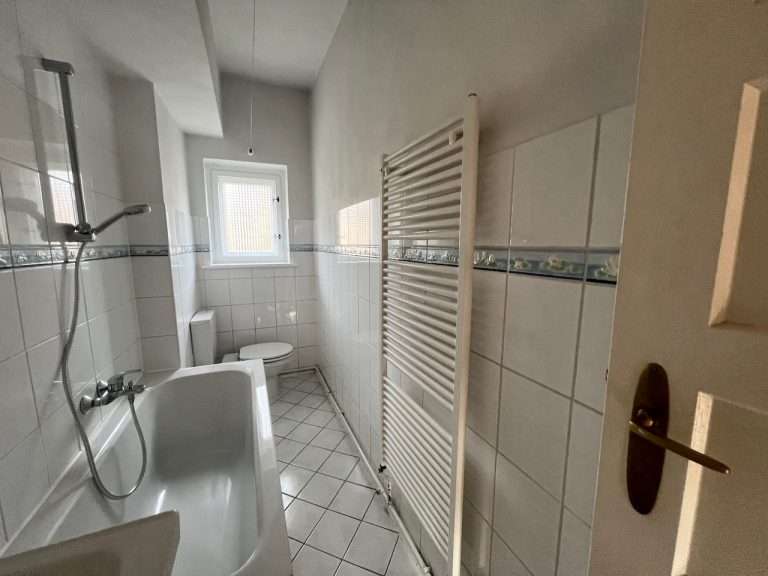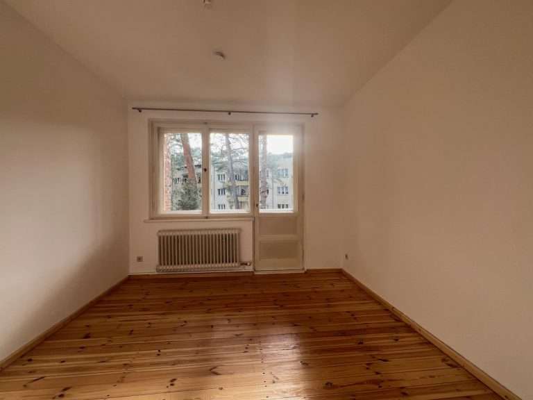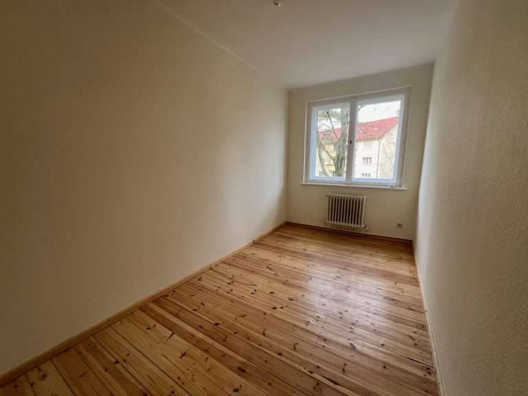 Die gepflegte Wohnung befindet sich im ersten Obergeschoss, ist bequem über das Treppenhaus zu erreichen und verfügt über eine Wohnfläche von ca. 60,86 m². Diese verteilt sich auf einen Flur; ein tagesbelichtetes Badezimmer, ausgestattet mit einer Badewanne und Handtuchwärmer; ein Schlafzimmer; ein kleineres Zimmer; eine Küche und ein hübsches Wohnzimmer. Die südlich ausgerichtete Loggia ist vom Schlafzimmer und Wohnzimmer aus zu begehen und bietet einen schönen Blick auf das begrünte Grundstück sowie Platz zum Entspannen.