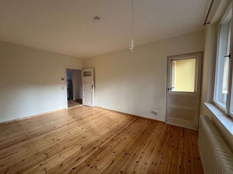 Die Wohnräume und der Flur sind mit schönen Holzdielen ausgestattet, die Küche und das Badezimmer sind gefliest. Die Doppelkastenfenster bestehen aus Holz. Die Wände sind tapeziert und die Decken in den Wohnräumen und Wände zur Nachbarwohnung wurden zusätzlich isoliert.