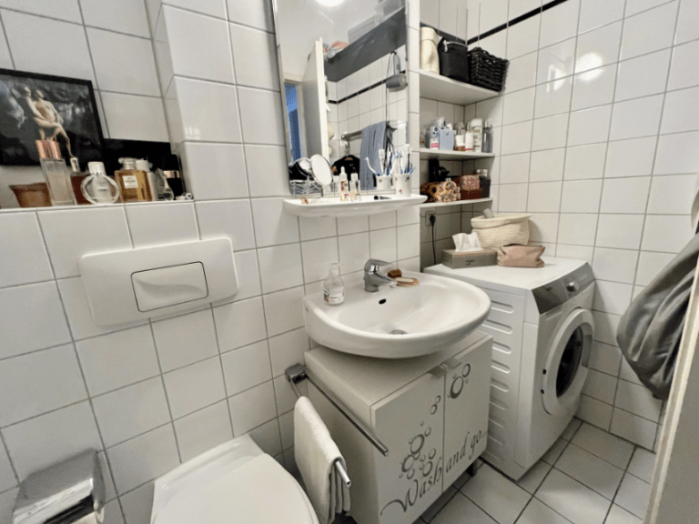 Die Wohnung ist mit einem schönen Parkettboden ausgestattet, die Wände sind verspachtelt, und das Badezimmer und die Küche sind hell und modern gefliest. Im Badezimmer befindet sich auch der Waschmaschinen-Anschluss.