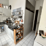 Die 2-Zimmer-Wohnung befindet sich im 1. Obergeschoss des Vorderhauses. Auf ca. 47 m² Wohnfläche verteilen sich ein Flur, ein Badezimmer, ausgestattet mit einer Badewanne, ein Schlafzimmer, ein Wohnzimmer mit Zugang zum Balkon und eine Küche, welche halb offen zum Wohnzimmer gestaltet ist.