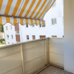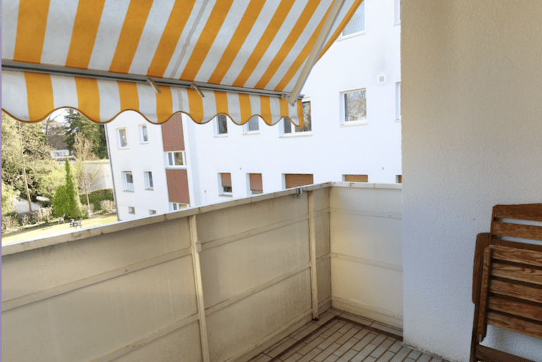 Der Balkon mit Blick auf eine Grünanlage bietet einen erholsamen Bereich zum Entspannen.