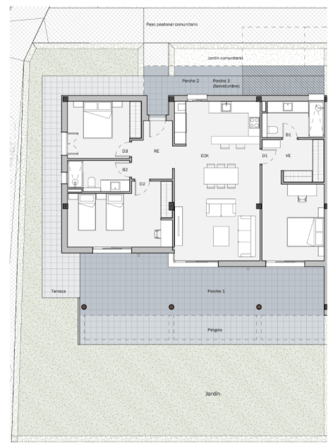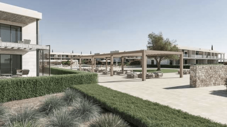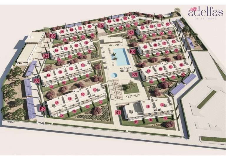 Nur wenige Gehminuten vom Strand Es Trenc entfernt liegt diese private Wohnanlage, aufgeteilt in mehrere, kleine Häuserkomplexe, mit Fitnessstudio, großem Salzwasser-Pool und schönen Gemeinschaftsgärten.