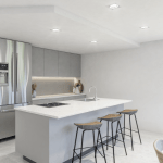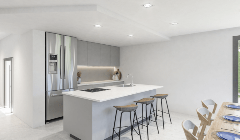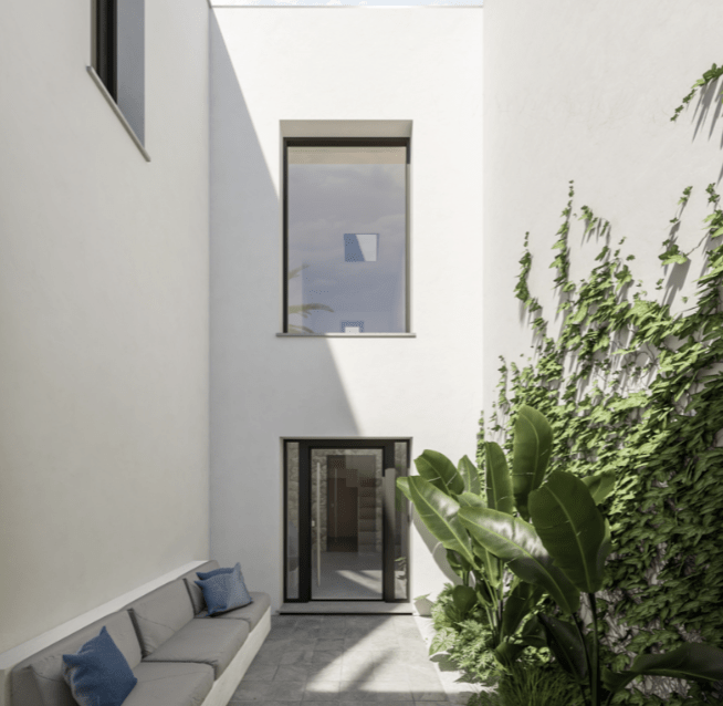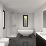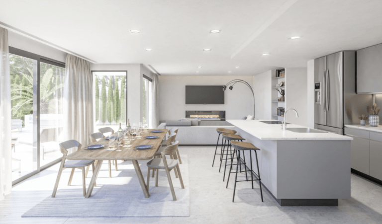 Im Erdgeschoss des Hauses sind nebst Eingangsbereich, Gäste-WC und Hauswirtschaftsraum eine zum Essbereich offene Küche mit angrenzendem, großem Wohnzimmer mit raumhohen Fenstern und Zugang zum Garten geplant. Die Ebene wird mit einem geschmackvollen Fliesenboden versehen werden, welcher sich auch im Außenbereich wiederfinden wird, um einen weitläufigen, einheitlichen Eindruck zu erhalten.