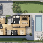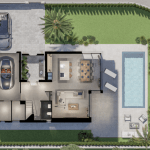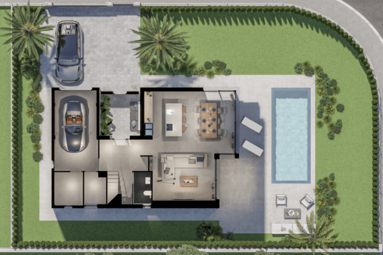 Im Garten ist ein großer Pool (ca. 8m x ca. 4m) vorgesehen. Eine Garage und ein PKW-Stellplatz runden das Angebot ab.