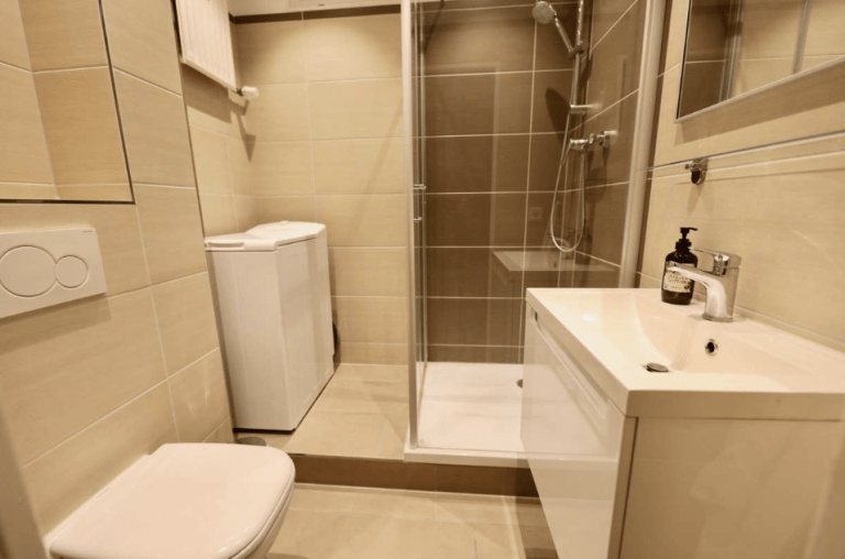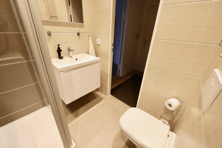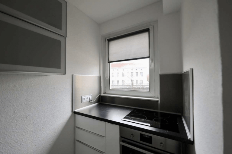 Die Deckenhöhe der Wohnung beträgt ca. 2,65m, die Wände der Wohnräume sind tapeziert, und das Badezimmer verfügt über moderne, helle Fliesen.