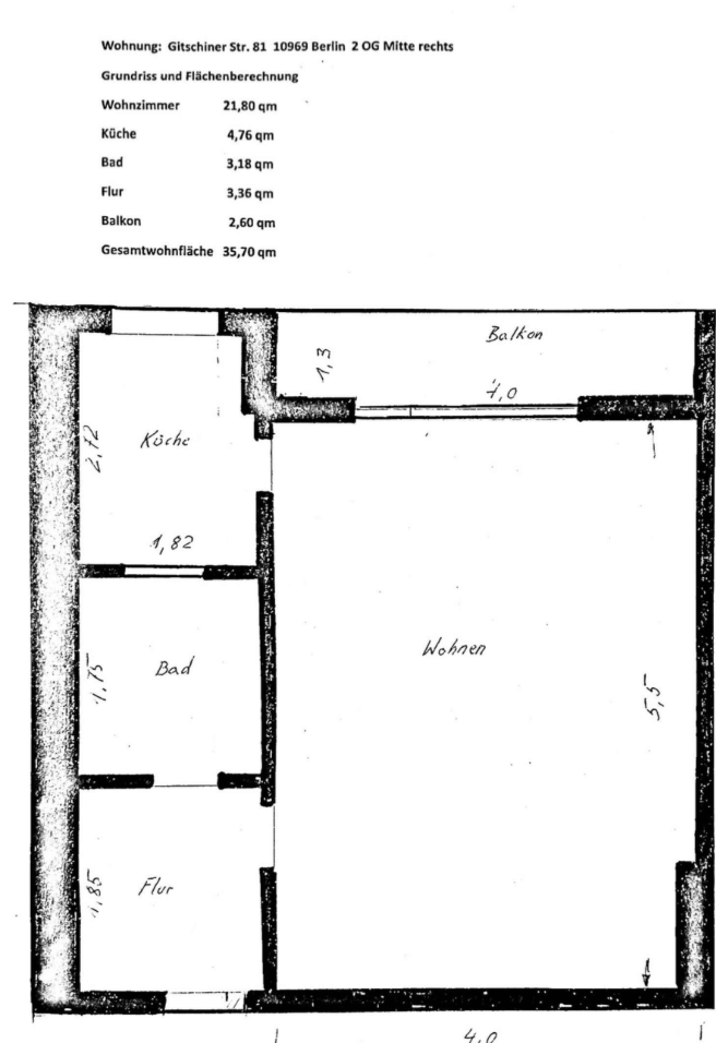 Über eine Wohnfläche von ca. 36 m² verteilen sich ein geräumiger Flur mit einem praktischen Einbauschrank, ein Wohn-/Schlafzimmer, ein neu saniertes Duschbad sowie eine Küche, welche mit einer Einbauküche ausgestattet ist.