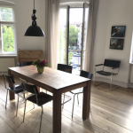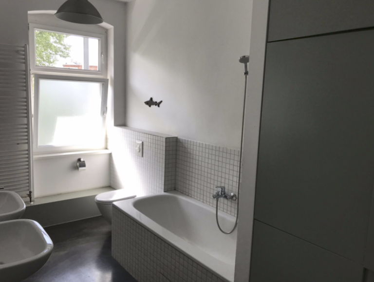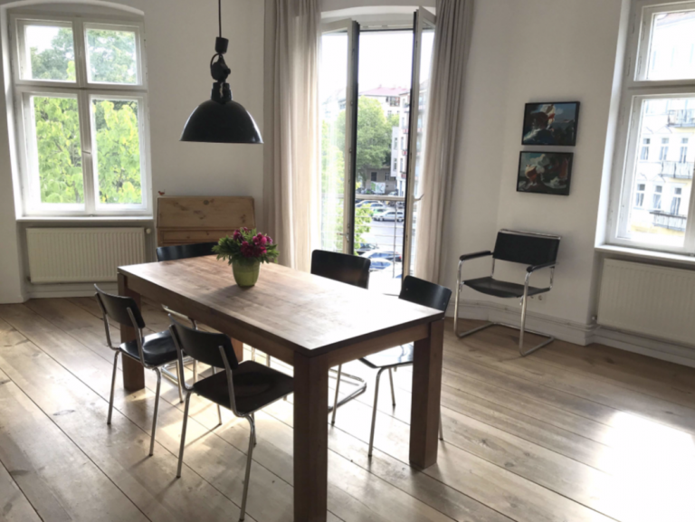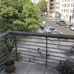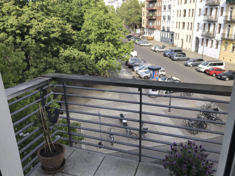 Zudem verfügt die Wohnung über zwei Balkone. Ein Balkon mit östlicher Ausrichtung ist zur Straße gelegen und hat einen unverbaubaren Weitblick über den Arkonaplatz, der andere Balkon mit westlicher Ausrichtung zeigt in dem ruhigen, im Innenhof gelegenen Garten mit alten Baumbeständen. Da weder ein Seitenflügel noch ein Hinterhaus existiert, ist der Garten besonders sonnig und hell.